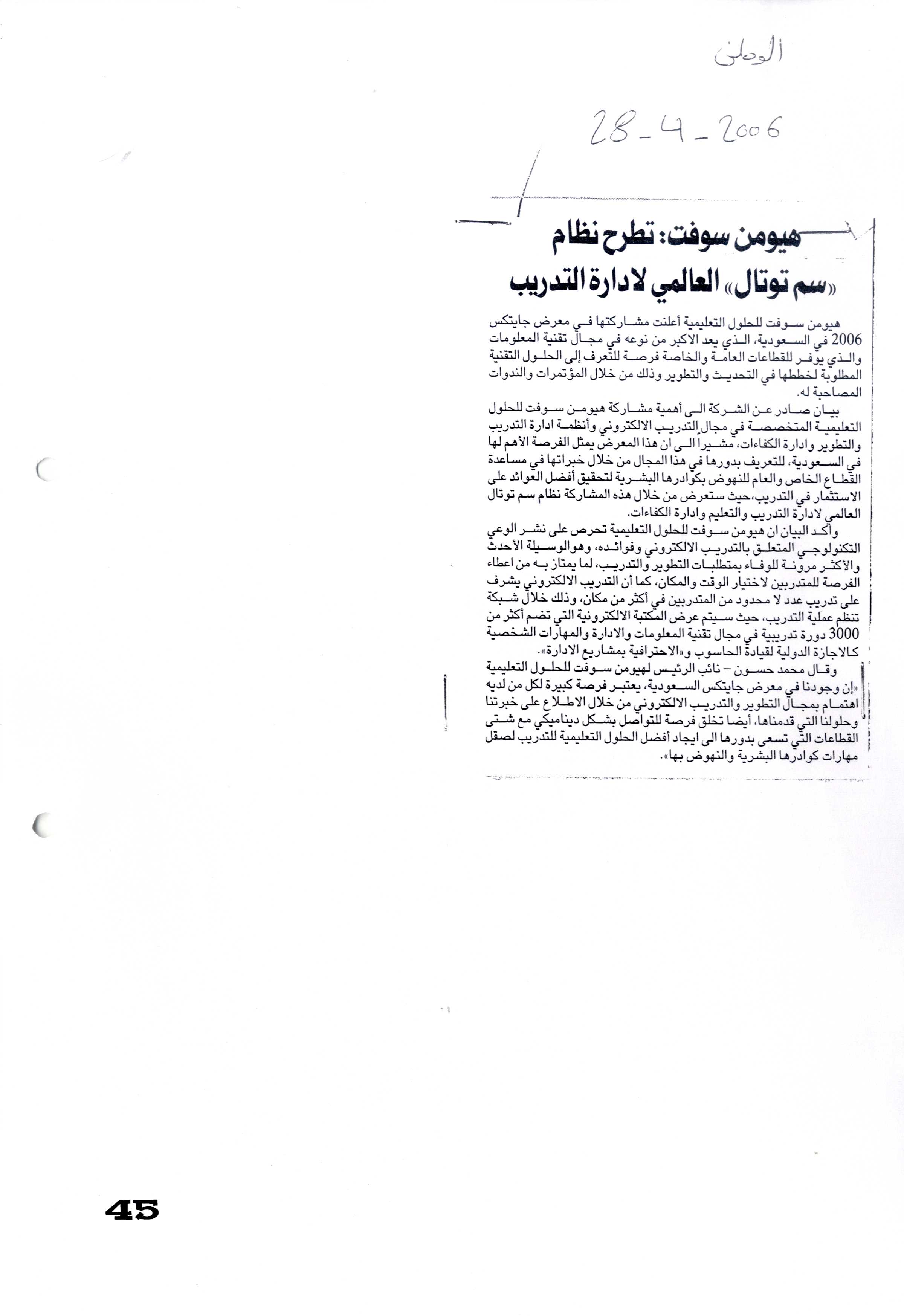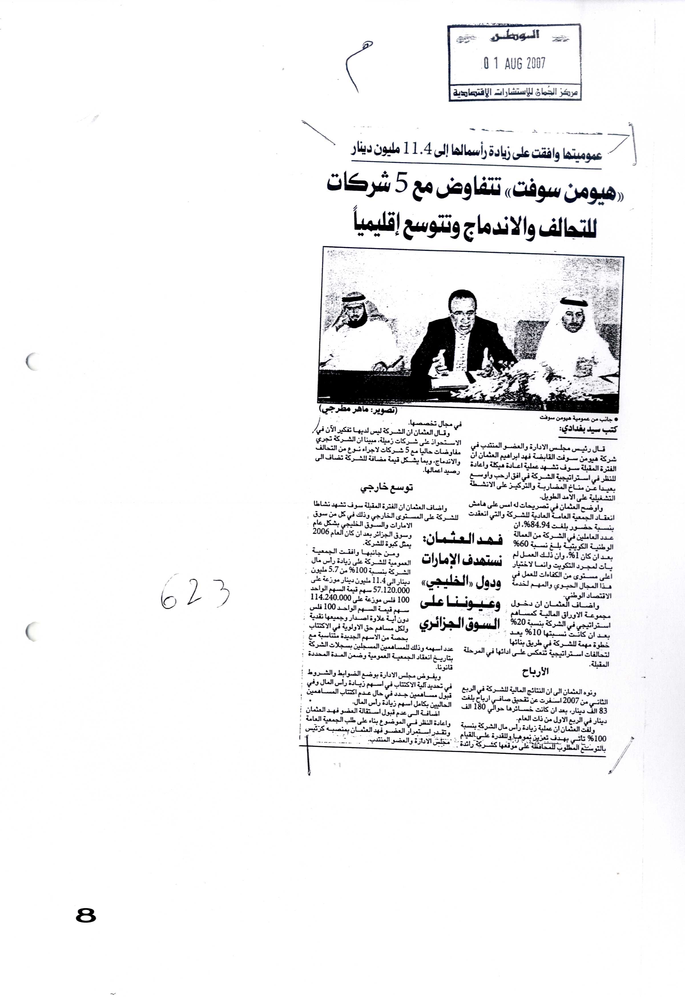 فهرس أرشيف أخبار "شركة هيومن سوفت القابضة" في بعض الصحف المحلية خلال الفترة من 11 يناير 2005 إلى 9 أكتوبر 2007
