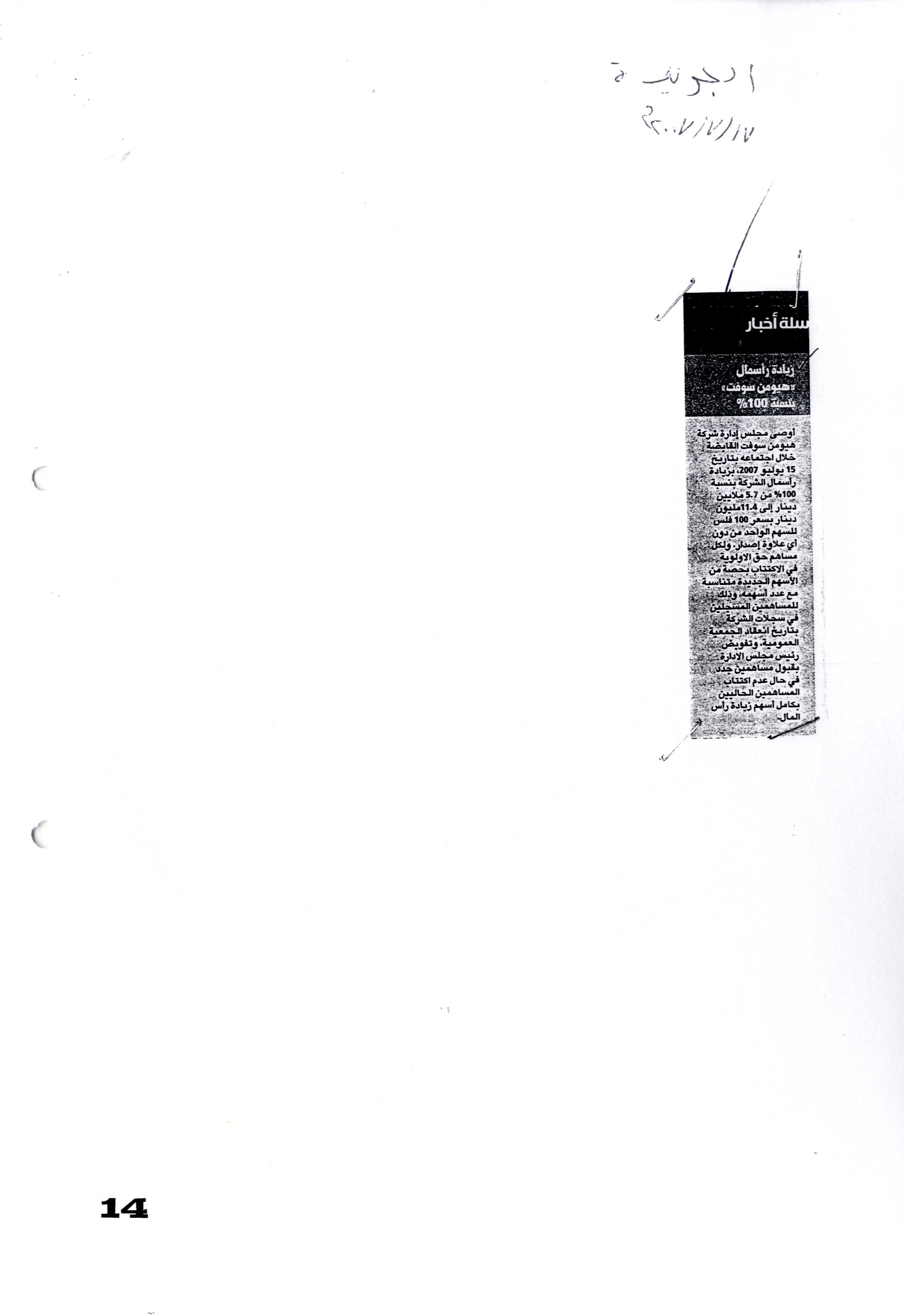 إعلان لحضور إجتماع الجمعية العامة العادية للسنة المالية المنتهية في 2006.12.31