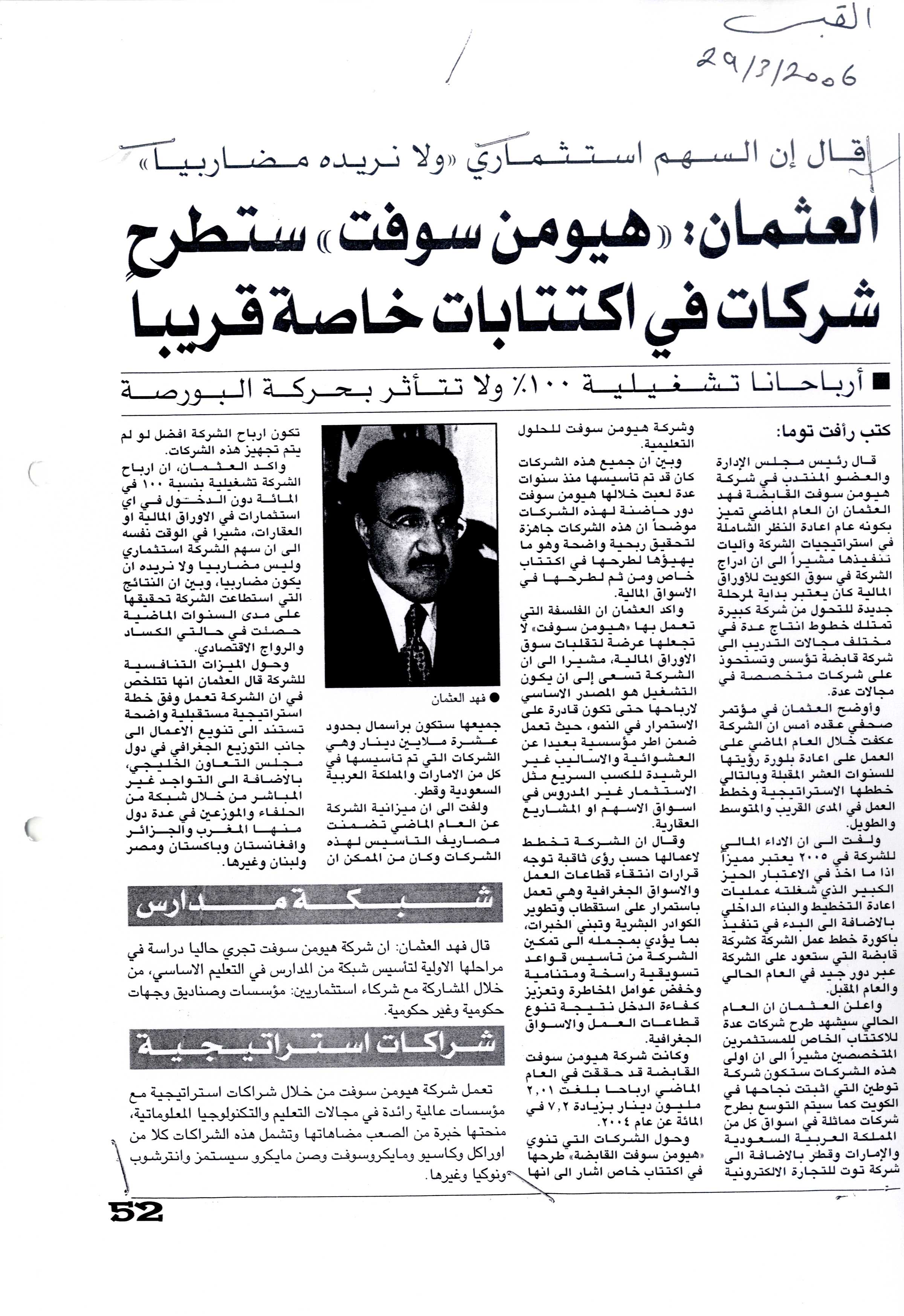 2.9 مليون دينار خسائر "هيومن سوفت" لعام 2006