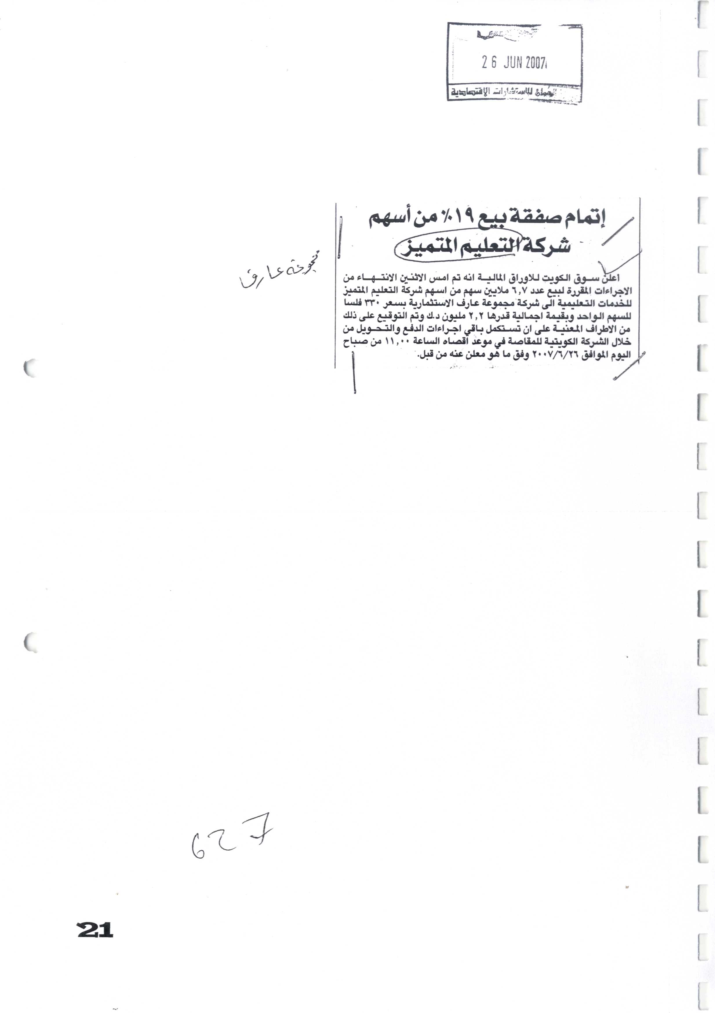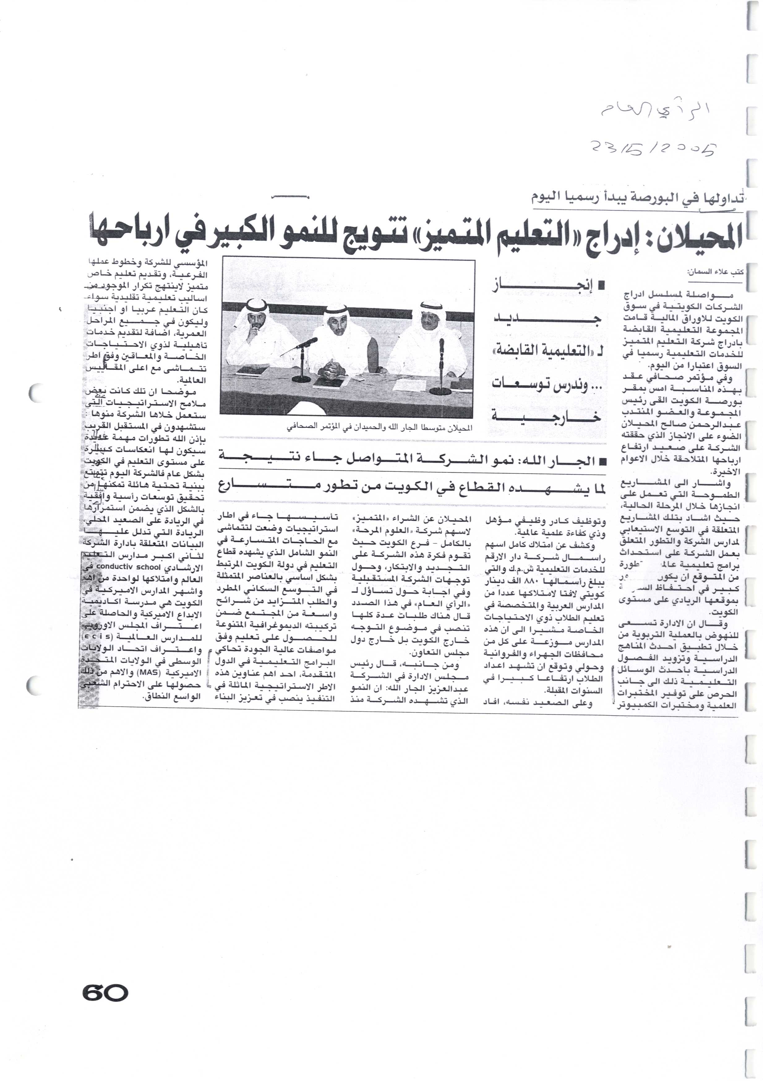 إعلان عن إدراج أسهم "التعليم المتميز" في سوق الكويت للأوراق المالية