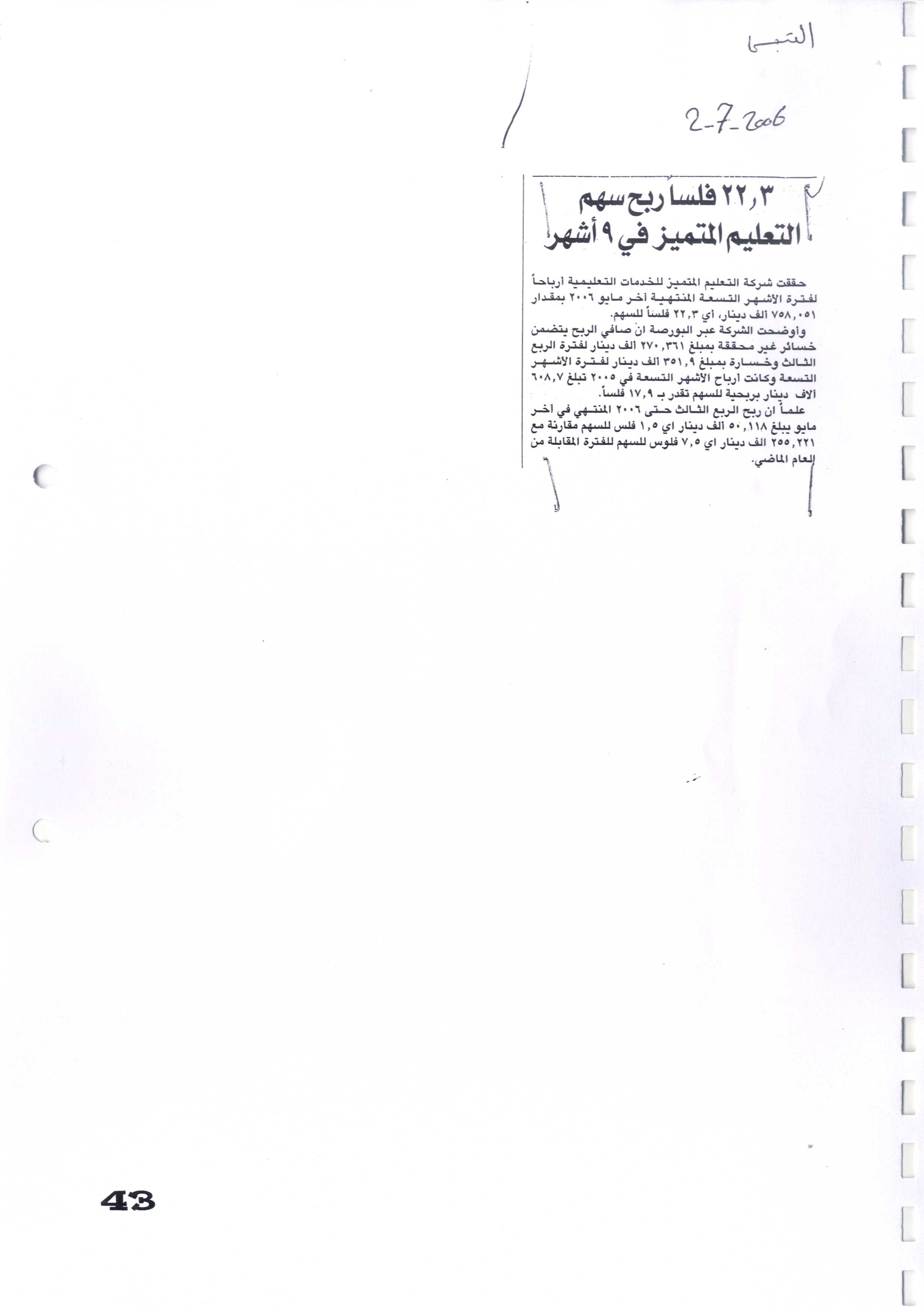 إعلان لمساهمي "التعليم المتميز" بإنعقاد إجتماع الجمعية العمومية العادية في 2006/07/23