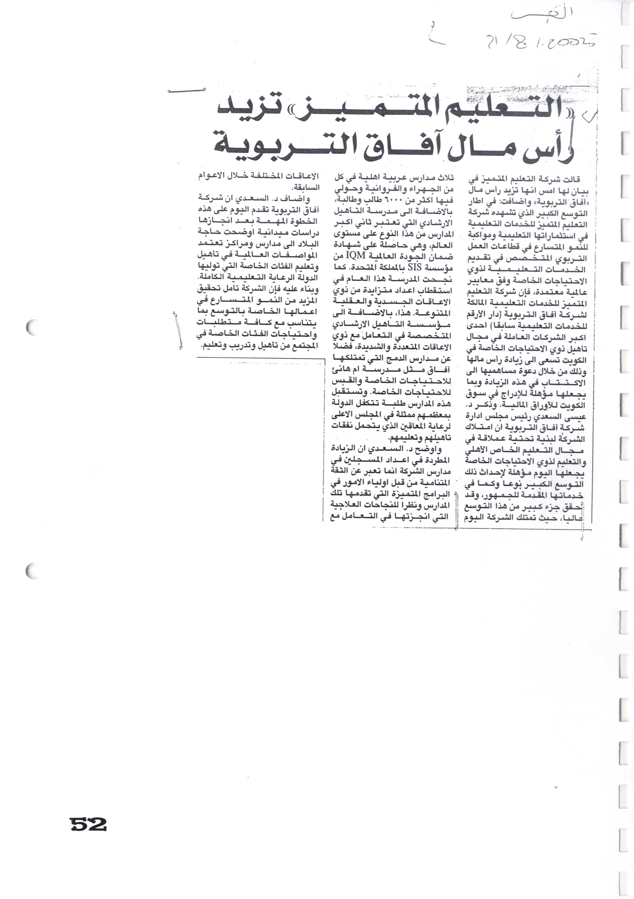 "التعليم المتميز" ترفع رأسمالها إلى 294 في المئة