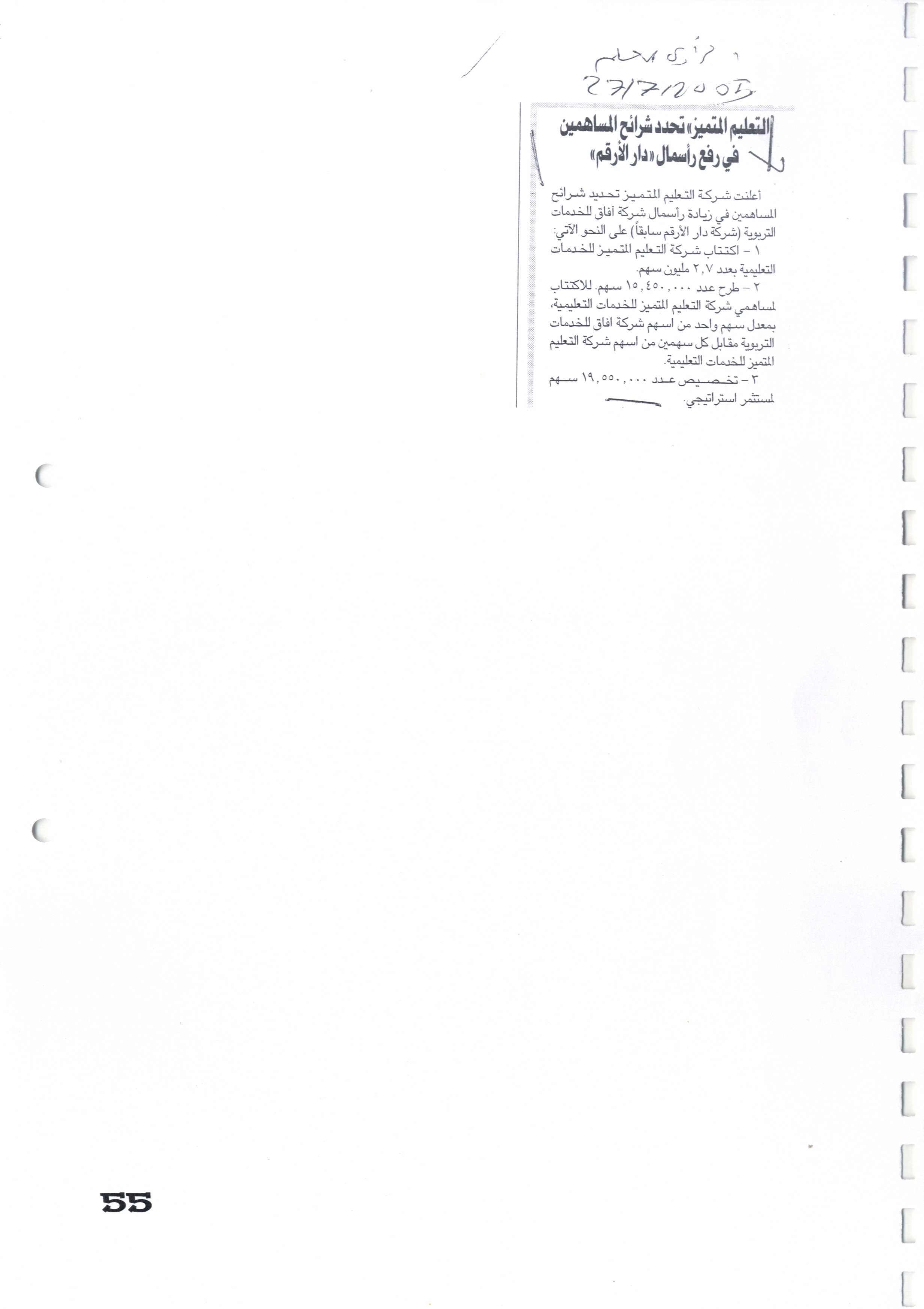 إعلان تذكيري لمساهمي "التعليم المتميز" للإكتتاب بزيادة رأسمال "آفاق للخدمات البترولية"