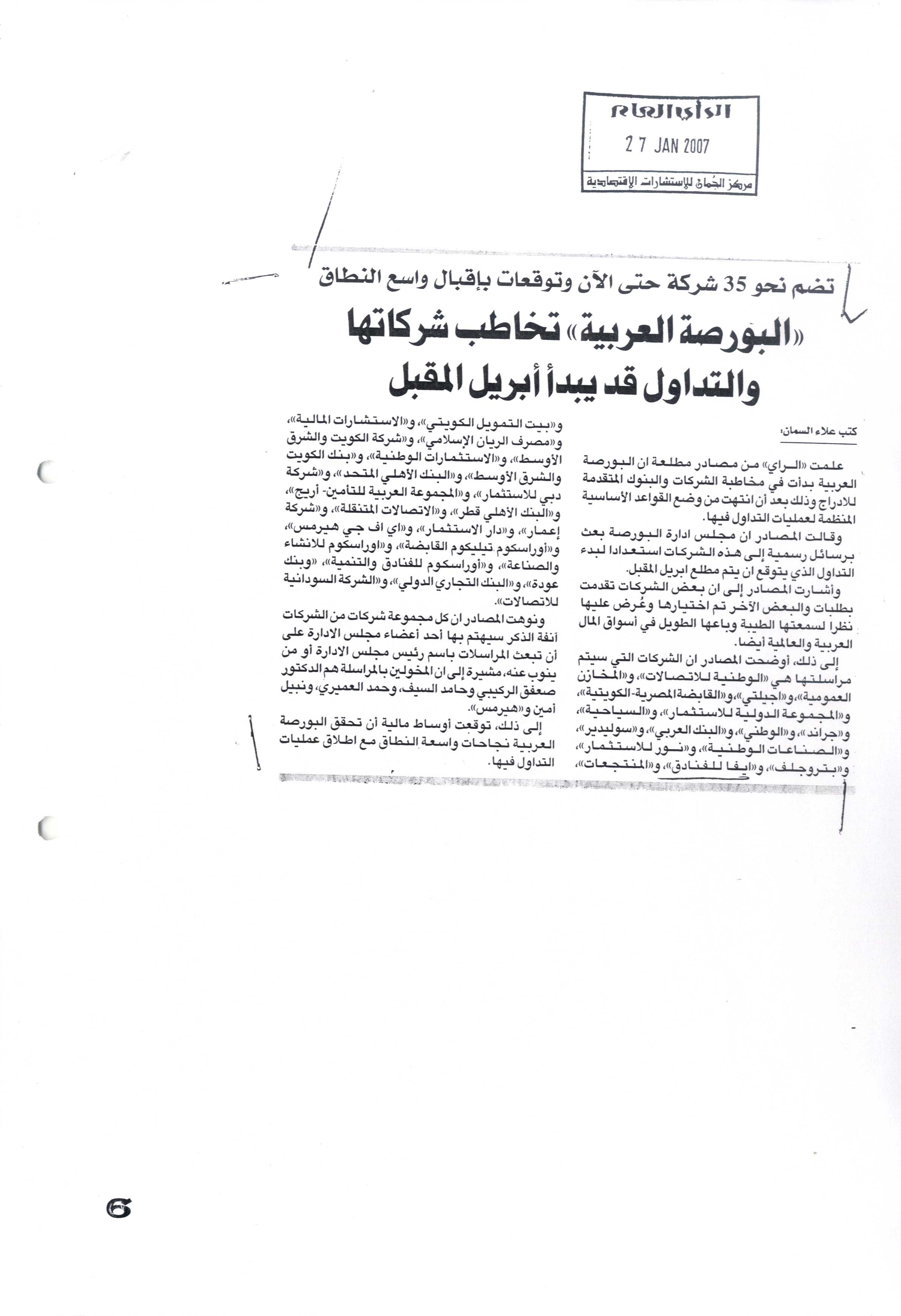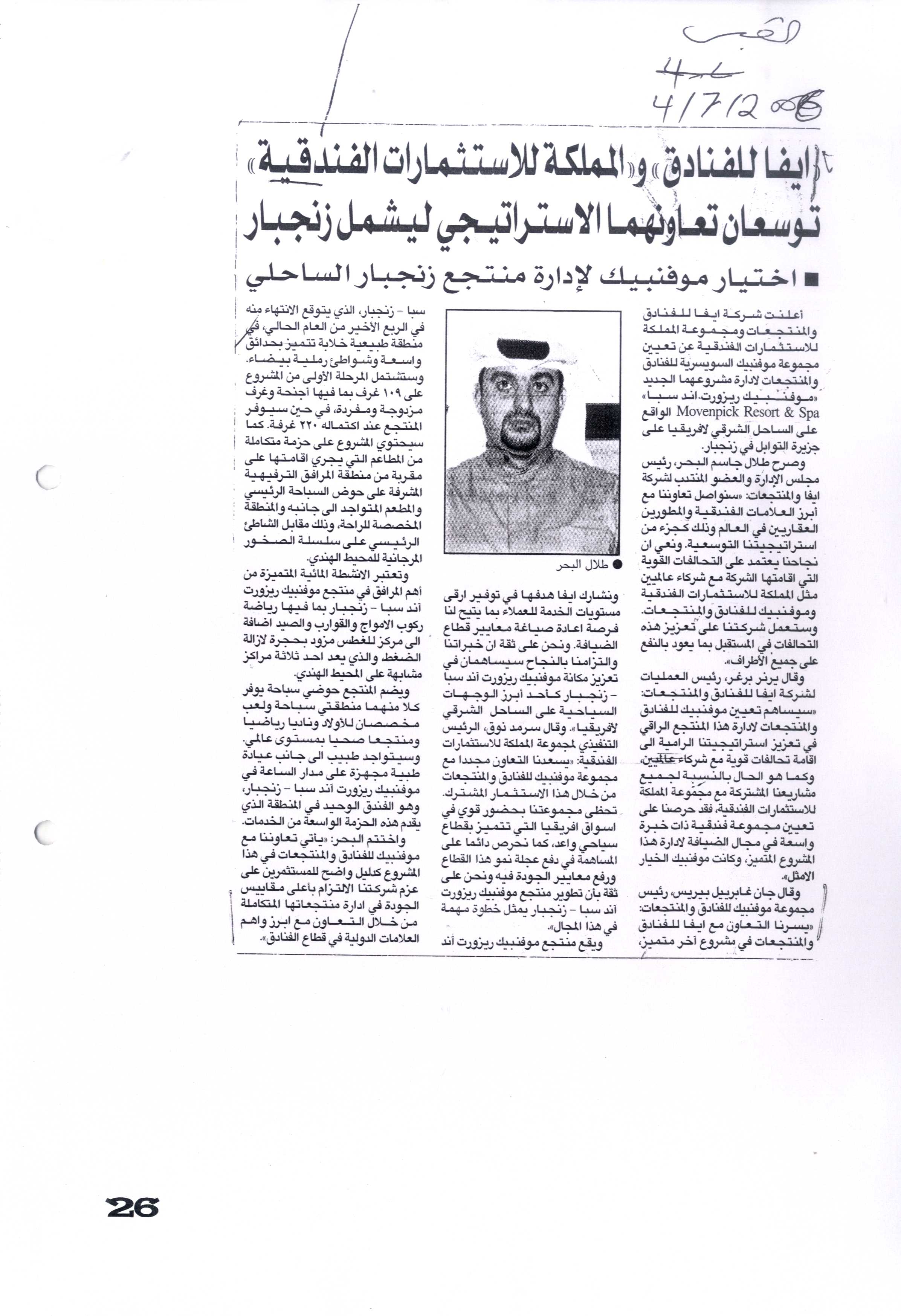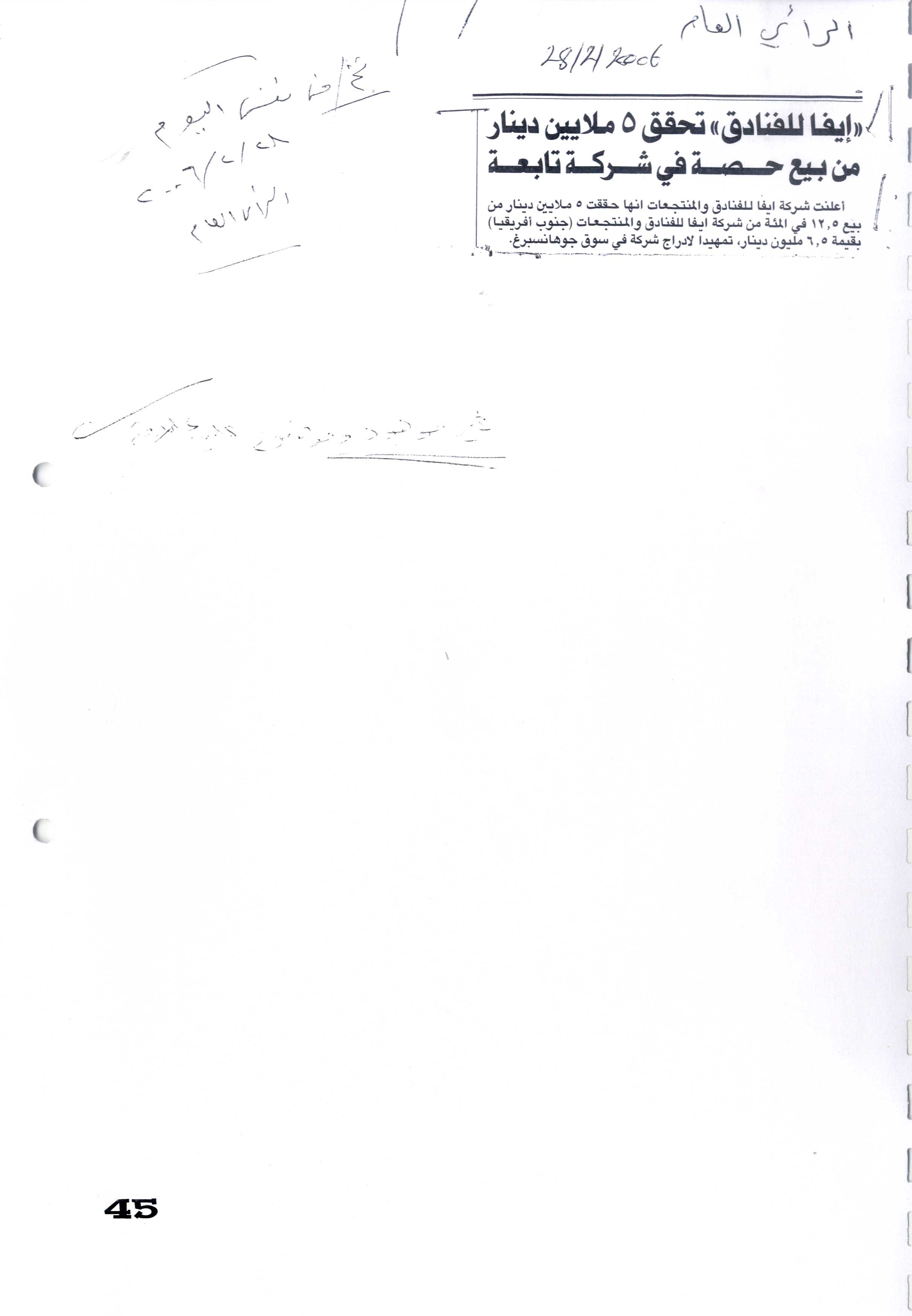 فهرس أرشيف أخبار "شركة إيفا للفنادق والمنتجعات" في بعض الصحف المحلية خلال الفترة من 24 ديسمبر 2005 إلى 11 فبراير 2007