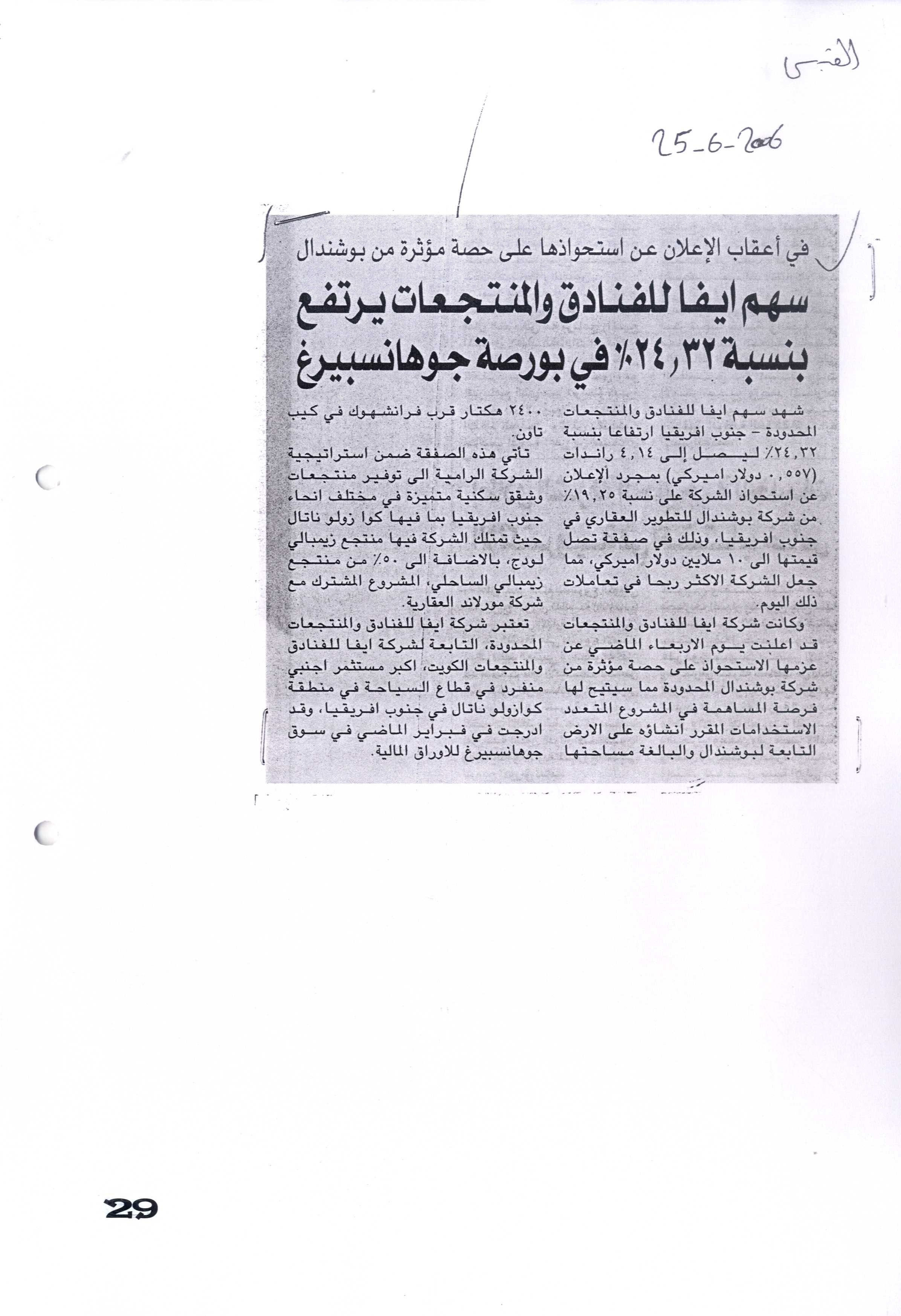 تتمه ،،، إعلان مدفوع لـ "إيفا فنـــــادق" عن إستحواذها على حصة مؤثرة من منطقة "بوشندال" التاريخية في جنوب أفريقيا