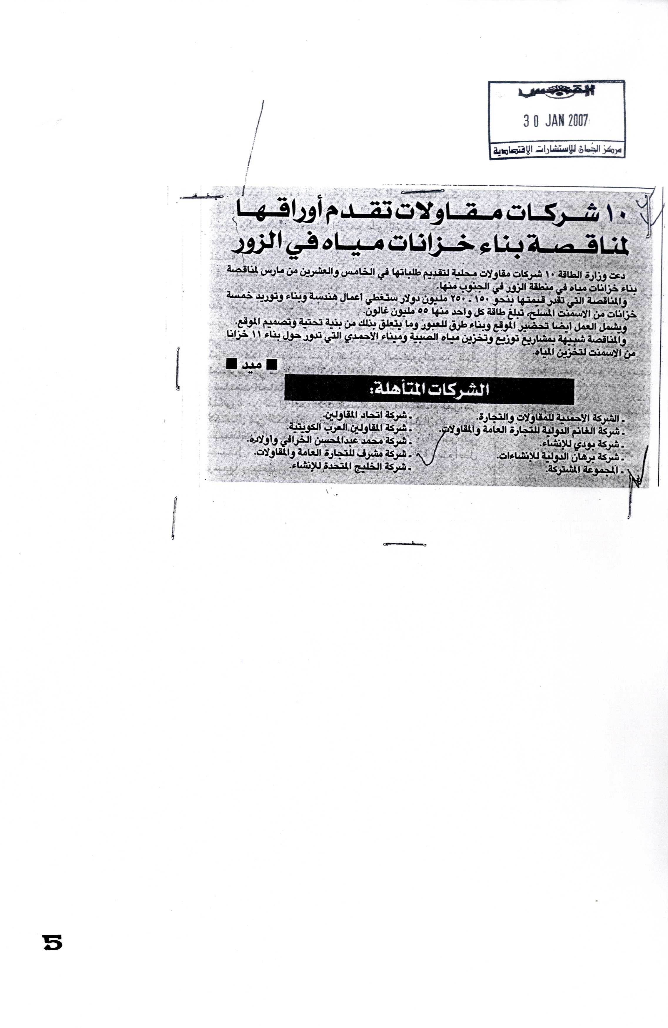 فهرس أرشيف أخبار "شركة مشرف للتجارة والمقاولات" في بعض الصحف المحلية خلال الفترة من 02 يناير 2006 إلى 05 فبراير 2007