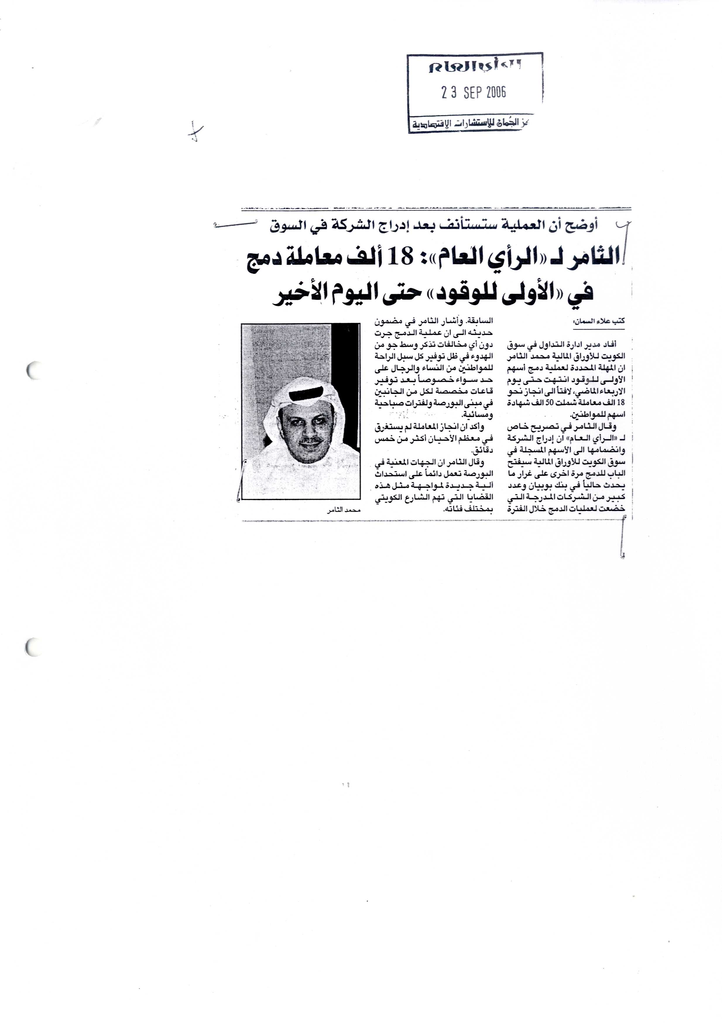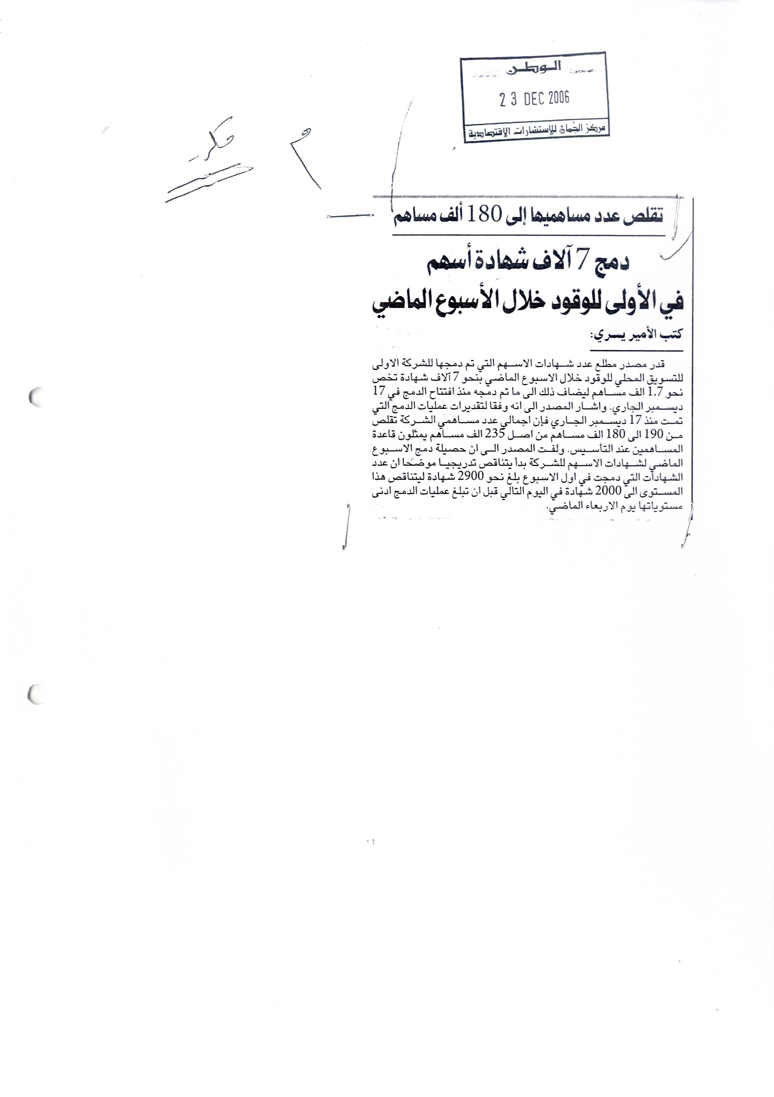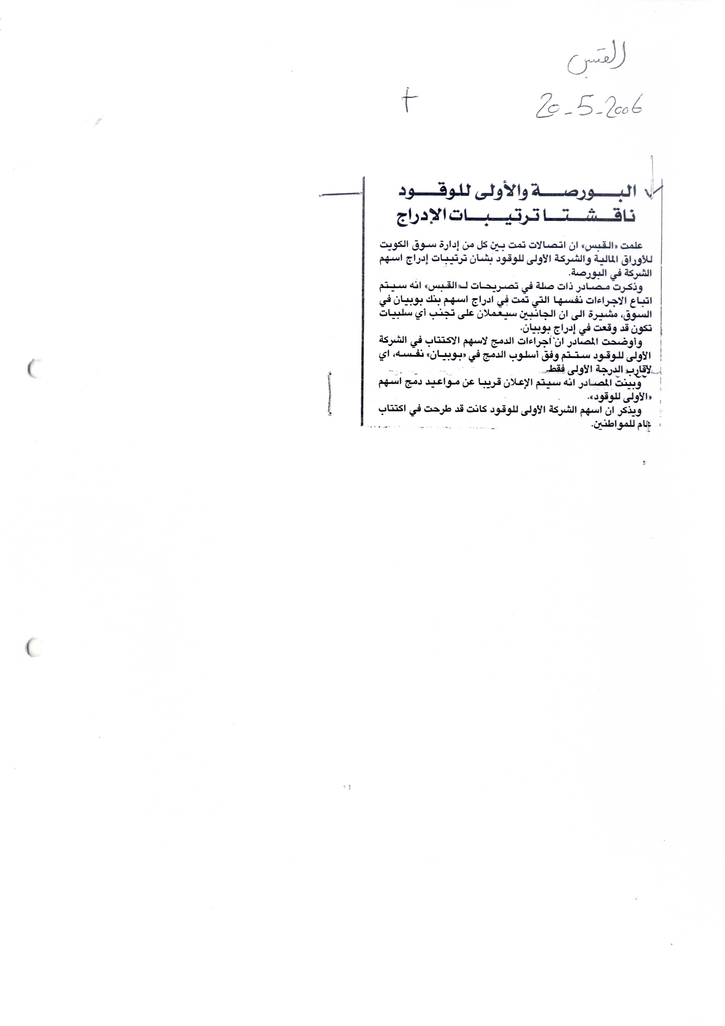 تتمة "أولى وقود" إعلان إدراج اسهم الشركة في سوق الكويت للأوراق المالية