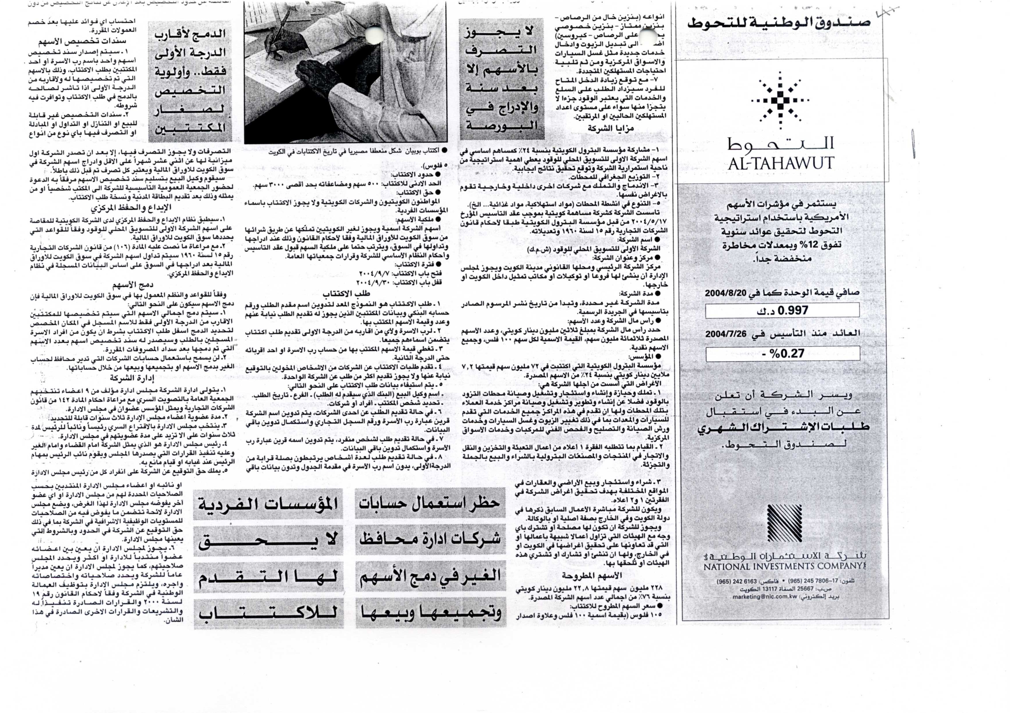تتمة "أولى وقود" : الاكتتاب من 7 إلى نهاية سبتمبر