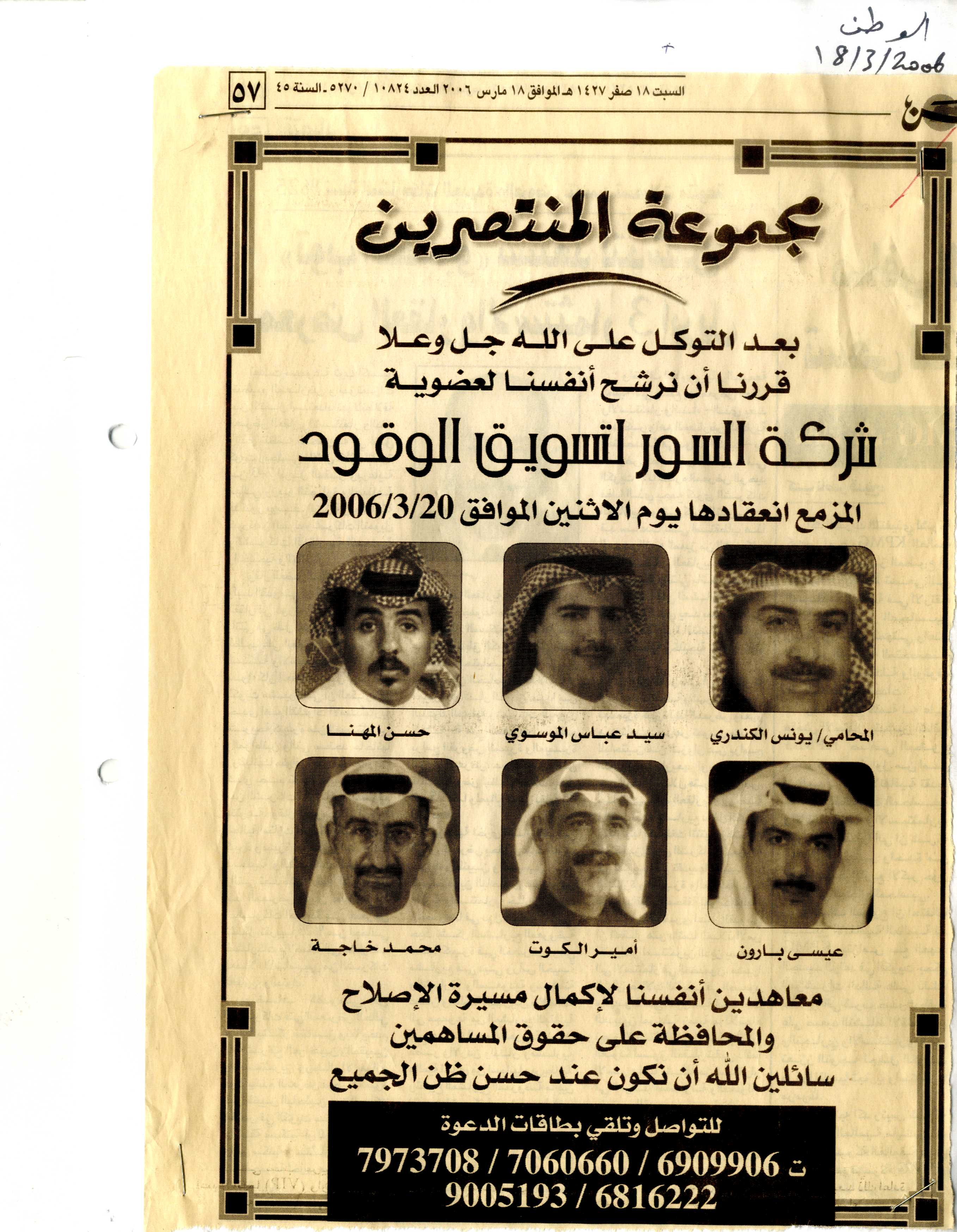 ( مجموعة المنتصرين ) : قررنا أن نرشح أنفسنا لعضوية " السور " المزمع انعقادها يوم الأثنين الموافق 2006.03.20