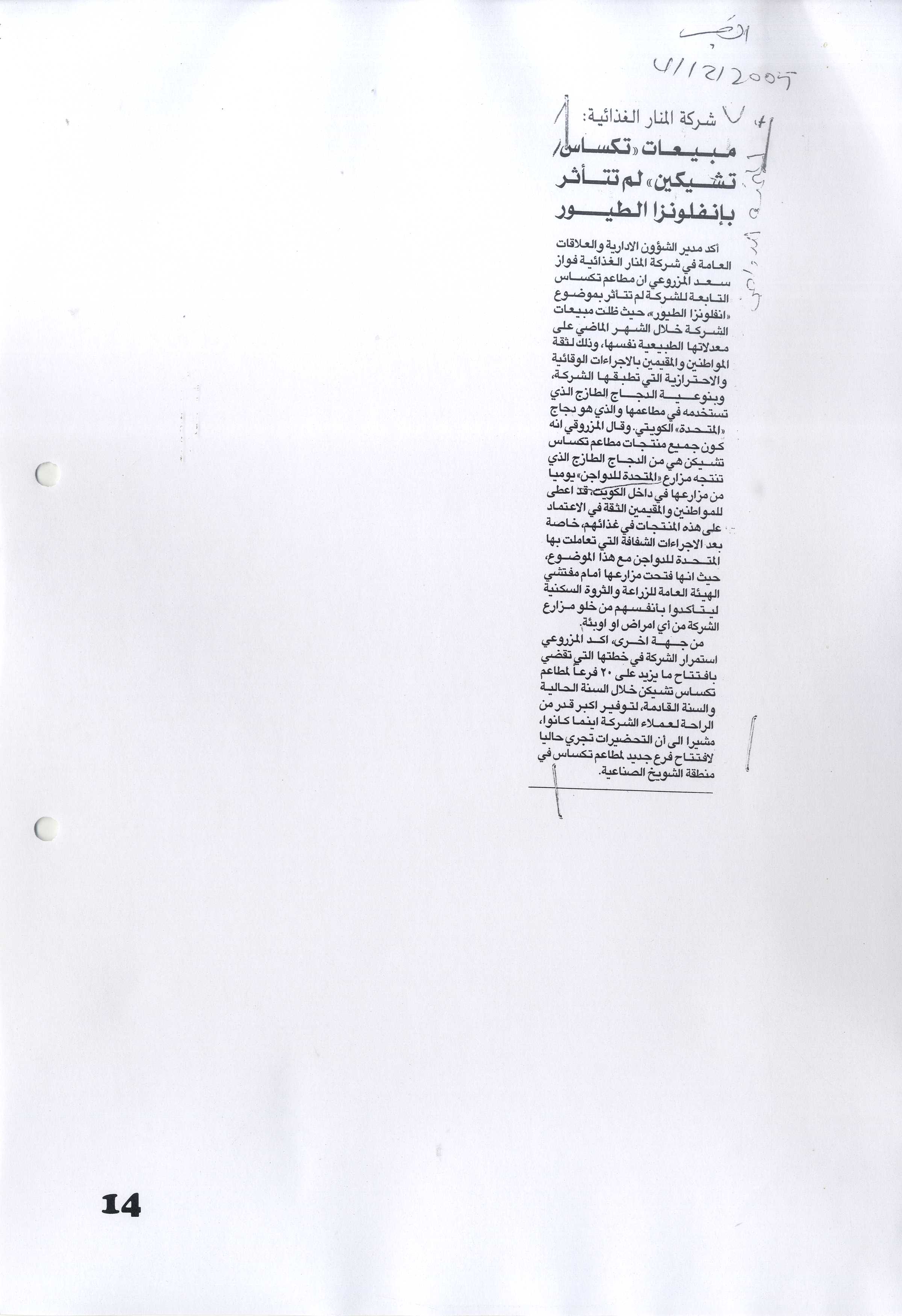 اليوسف لـ "الراي العام": عقود جديدة لـ "دواجن" والأرباح في 2003 ستكون ثلاثة أضعاف |