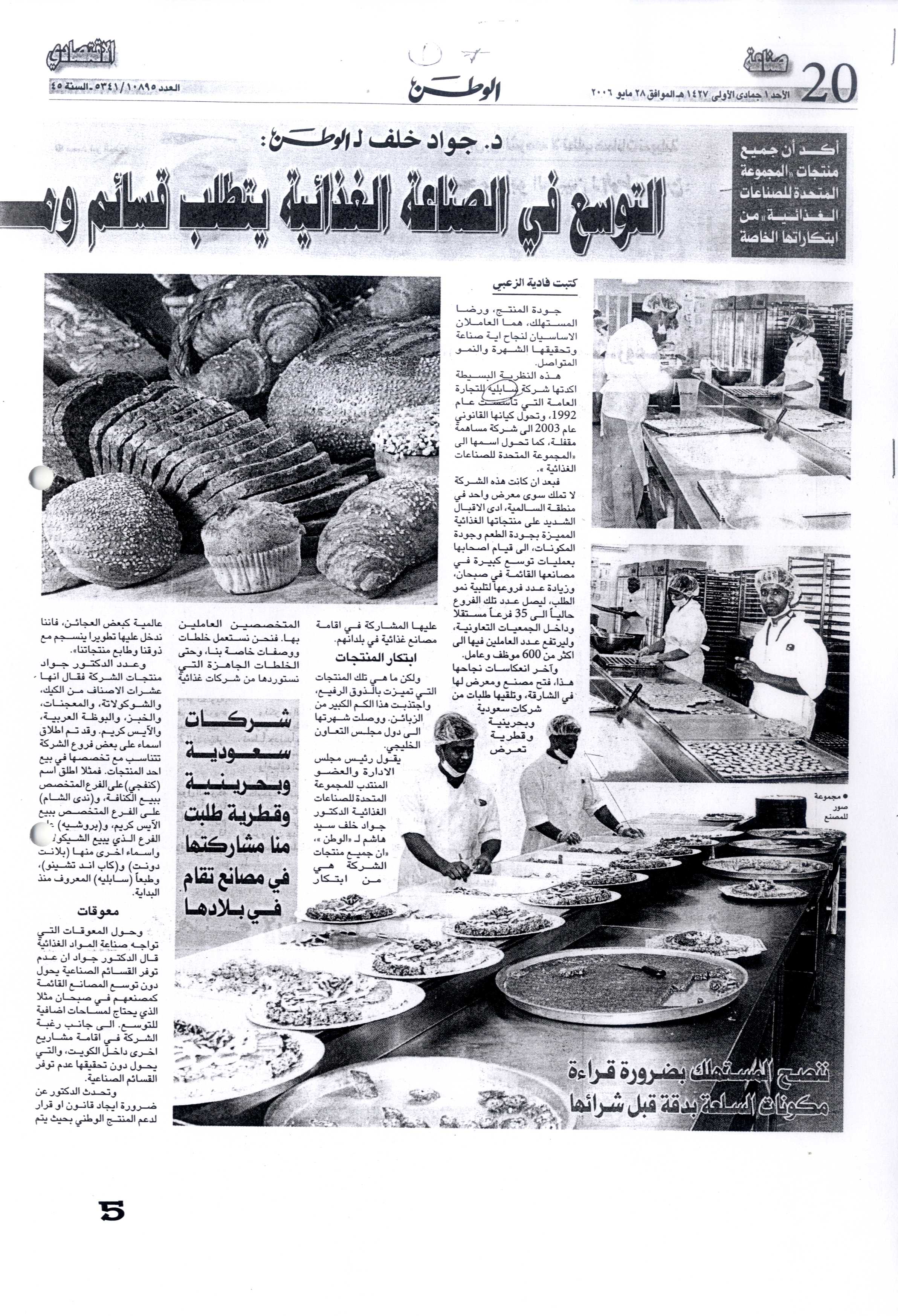 فهرس أرشيف أخبار "شركة المجموعة المتحدة للصناعات الغذائية" في بعض الصحف المحلية خلال الفترة من 04 فبراير 2004 إلى 20 ديسمبر 2006