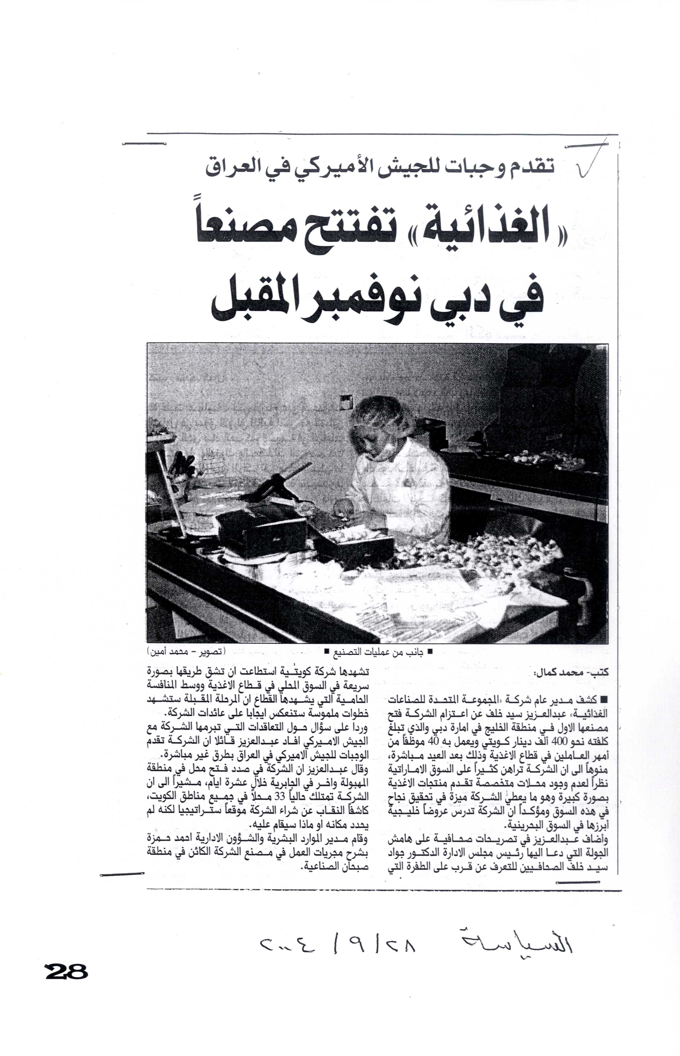 تصحيح خبر نُشر أمس في "الراي" : "صبحان للصناعات الغذائية والدوائية" و ليس "المتحدة للصناعات الغذائية"