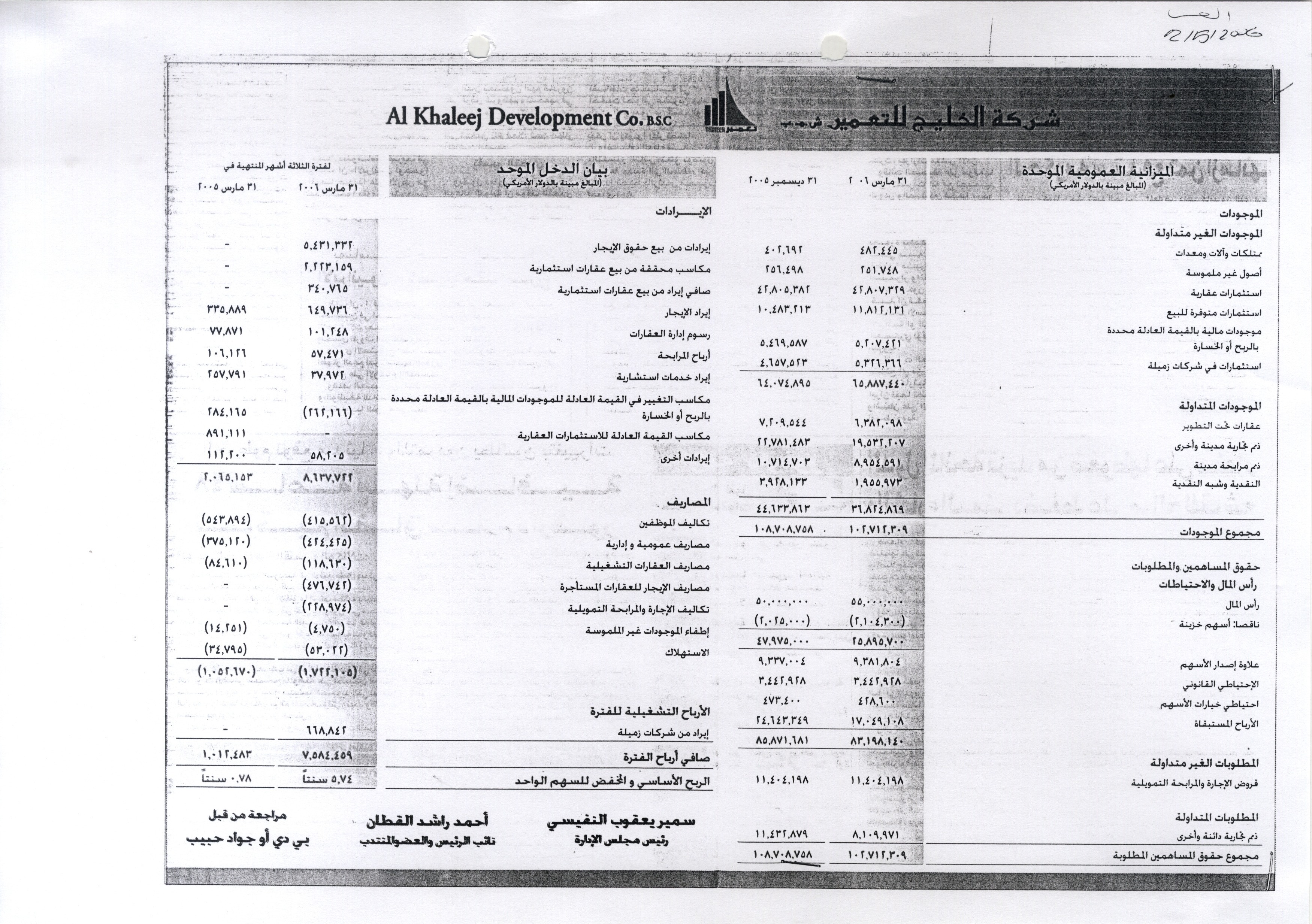 الميزانية العمومية الموحدة وبيان الدخل الموحد كما في 2006.03.31