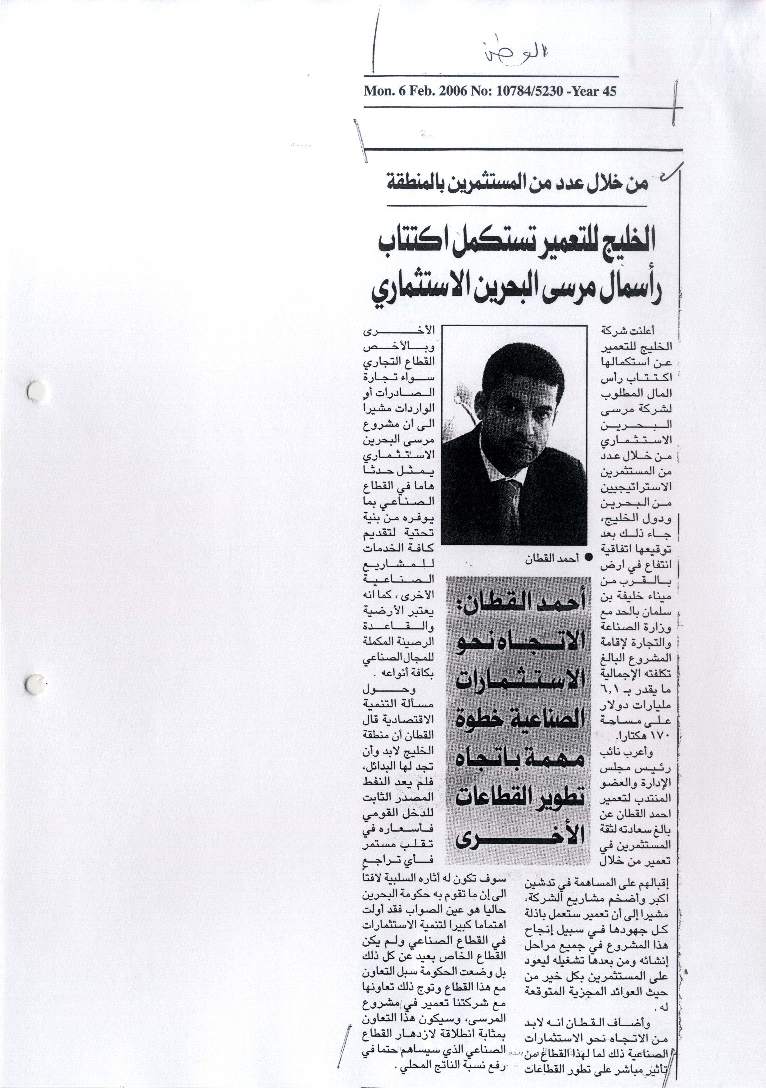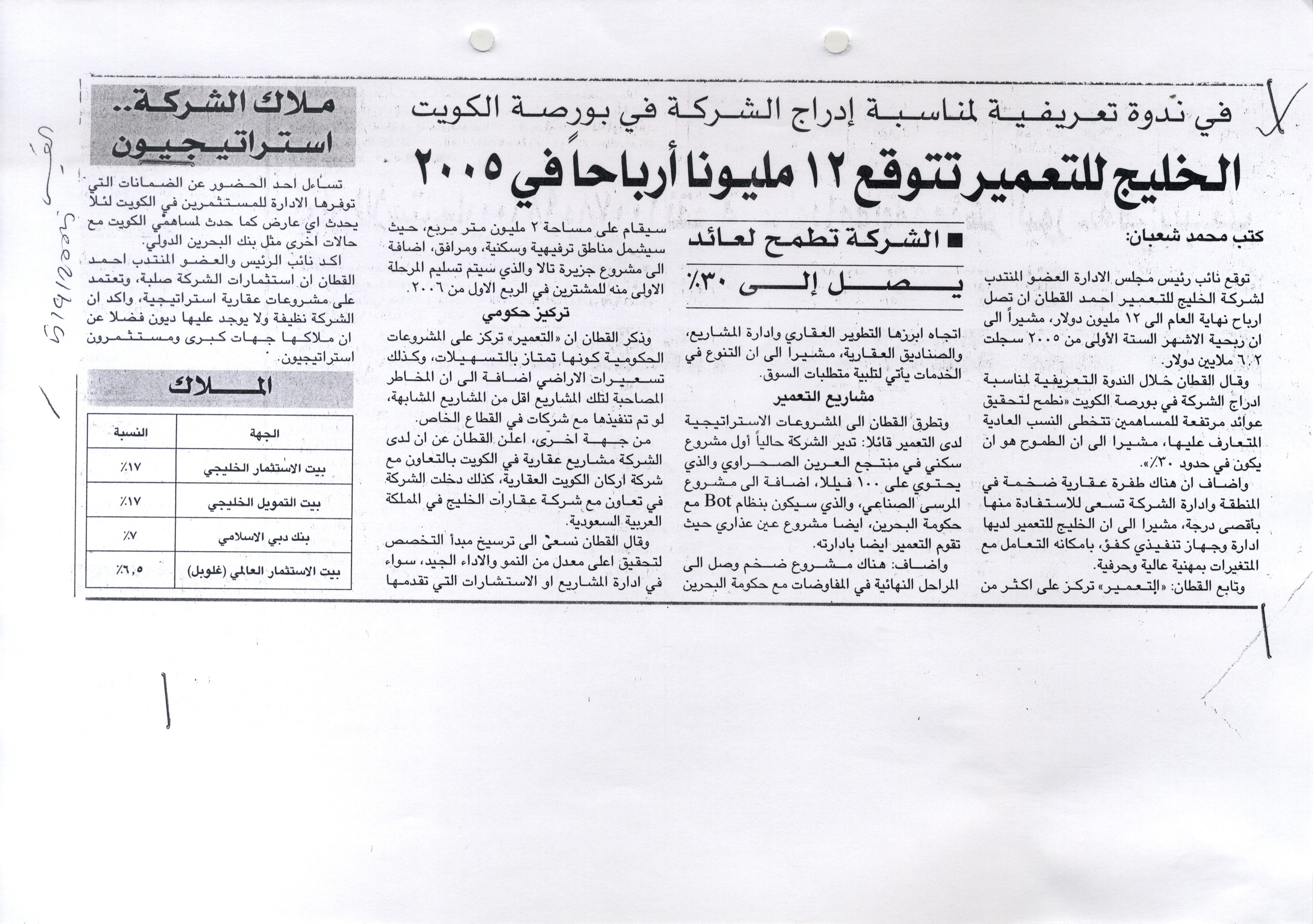 "الخليج للتعمير" حققت بتائج متميزة بأرباح بلغت 26 مليون دولار عام 2005